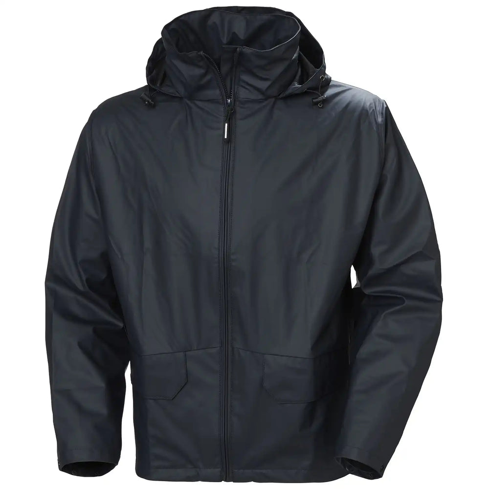 Die Regenjacke „VOSS“ von Helly Hansen bietet optimalen Schutz in feuchten Umgebungen. Hergestellt aus HellyTech® Performance-Gewebe mit PU-Beschichtung, erreicht sie eine Wassersäule von ca. 5000mm und erfüllt die höchste Nässeschutzklasse der EN 343. Die Jacke verfügt über einen hohen Stehkragen mit einstellbarer Kapuze, einen verlängerten Rücken und reflektierende Applikationen für erhöhte Sichtbarkeit. Das Material ist leicht elastisch dank Helox+-Technologie und bietet hohe Bewegungsfreiheit. Zwei vordere Einschubtaschen mit Patten bieten Stauraum. Der bequeme Schnitt ermöglicht das Tragen von wärmender Unterbekleidung. Ein durchgehender Frontreißverschluss mit Windschutzleiste und Kinnschutz sorgt für zusätzlichen Komfort. Die Jacke ist schlicht im Design und eignet sich für Arbeit und Freizeit.